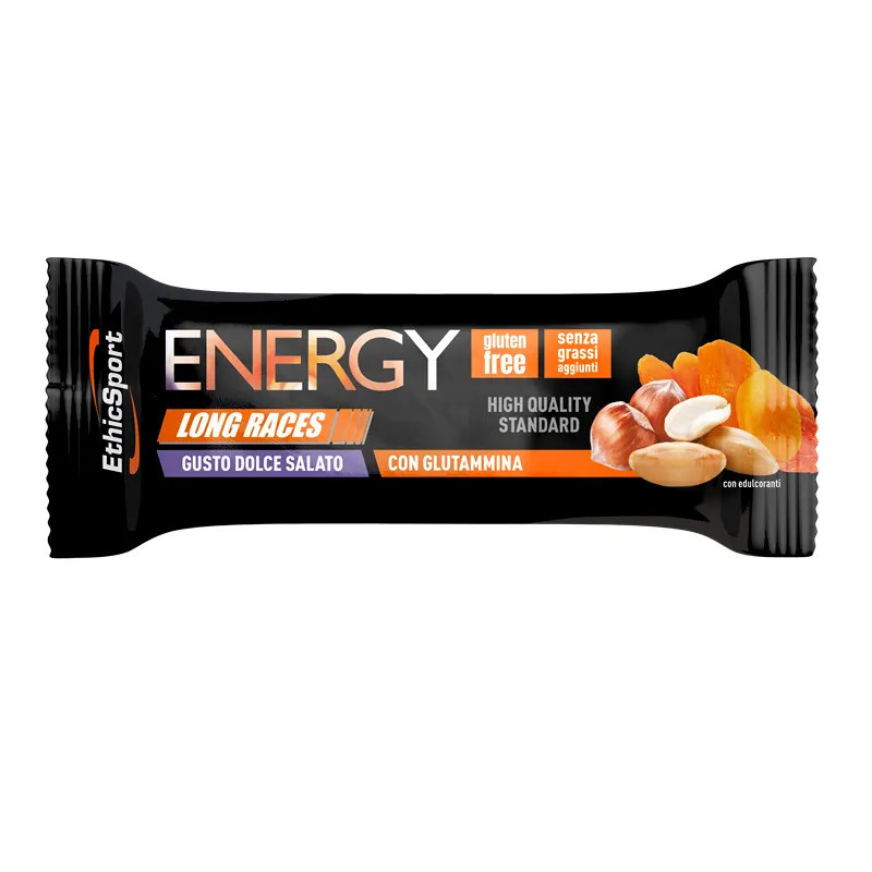 A Tecnica Energy Long Races Édes-Sós szelet kifejezetten hosszú távú állóképességi sportokhoz fejlesztett, energia utánpótlást hosszan biztosító szilárd táplálék. Hosszú távú állóképességi sportok számára ajánlott, de alkalmazható valamennyi más sportág esetén is. A szárított gyümölcsöknek és gabonaféléknek köszönhetően fokozatos felszívódású- és hosszan tartó energia utánpótlással látja el a szervezetet. Íze kiváló, könnyen rágható és emészthető. Állagát kritikus hőmérsékleti körülmények között (nagy melegben) is megtartja. Gluténmentes.