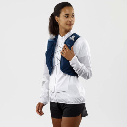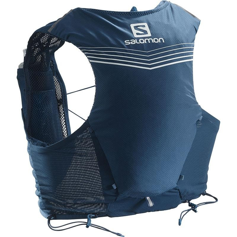 Mellényszerűen testhez illeszkedik, így nem akadályoz a mozgásban. Nem csúszkál ide-oda. A zsebeket eléred anélkül, hogy le kellene venned. Vállpántján lévő rekeszekben 500 ml-es Salomon Soft Flask található tartozékként.