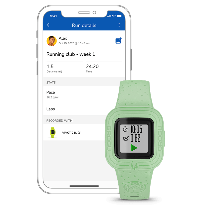 A vívofit jr. 3 nem csupán egy gyermekeknek készült fitnesz-tevékenységkövető, ez egy olyan interaktív élmény, ahol a gyermek az aktív életvitelével oldhat fel izgalmas Star Wars kalandokat a szülői okostelefonon. Választhat Mandalorian™ vagy Grogu™ közül.