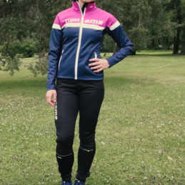 Bemelegítő nadrág sífutáshoz, oldalt teljes zippzárral, hogy könnyedén levehető legyen lecsatolás nélkül verseny indulásakor a bemelegítést követően.