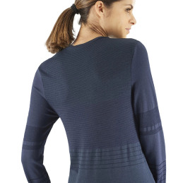 Hosszú ujjú, nőies szabású futó felső hűvös időre. Könnyű, gyorsan szárad, jól szellőzik. Kemény edzések alatt és után is száraz, szagmentes marad.