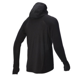 Hideg téli napokon nagyon kellemes viselet ez az eredeti ausztrál merinó gyapjúból készült futó felső, amelyet leginkább középső rétegként viselhetsz, de alsó rétegnek is kiváló vagy akár enyhébb napokon önállóan is megállja a helyét. A gyapjú jellegénél fogva a szellőzése kiváló, gyorsan szárad, miközben melegen tartja a testedet. Mandzsettája úgy lett kialakítva, hogy hüvelykujj kivágással kézfejet takaró kesztyűként vagy a teljes, az ujjakat is takaró egyujjas kesztyűnek is használható. A kapucni pedig mindig jól jön, hogy a futás előtt, után vagy netán közben is a fejtet melegen tartsa, így ha nincs sapka akkor is jó szolgálatot tesz mínusz fokokban vagy szeles időben. Félcipzáros mellkasi nyaki rész segít a hőháztartás szabályozásában.