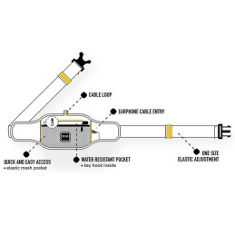 Minimalista futóöv, rugalmas, jól szellőző anyagból. Két darab 500 ml-es lágy kulacs is elhelyezhető a zsebeiben (nem tartozék). Erős, de mégis kellően elasztikus anyagból készül. Két túrabot számára hurkok és találhatók rajta. Zsebeiben minden apró dolog elfér, amire egy rövidebb edzés vagy verseny alatt szükség lehet.