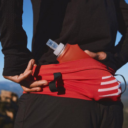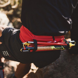 Minimalista futóöv, rugalmas, jól szellőző anyagból. Két darab 500 ml-es lágy kulacs is elhelyezhető a zsebeiben (nem tartozék). Erős, de mégis kellően elasztikus anyagból készül. Két túrabot számára hurkok és találhatók rajta. Zsebeiben minden apró dolog elfér, amire egy rövidebb edzés vagy verseny alatt szükség lehet.