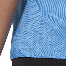 Kiemelkedően jó légcserét biztosító női felső. Ez részben az alapból jó légáteresztő és gyorsan száradó technikai anyagnak köszönhető, részben annak a lyukrendszernek, amelyik szinte a teljes felületén megtalálható. Szabása laza, elöl rövid, hátul kicsit hosszabb.