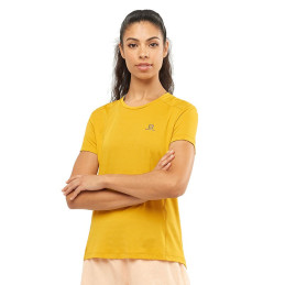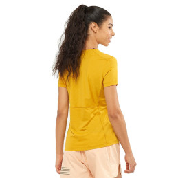 Élénk, neon színű rövid ujjú női felső jó nedvességelvezető technikai anyagból. Az egyébként is nagyon jó légáramlást tovább fokozza a perforált részek melyek elől is meglévő, de háton, különösen a gerinc mentén nagyobb számban és méretben találhatók meg.