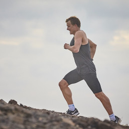 Rövid futónadrág nyári napokra, a környezetvédelem jegyében. Minden olyan hasznos tulajdonsággal rendelkezik, amit joggal elvársz egy hasonló darabtól. Nincs rajta semmi felesleges, mint pl. cipzár. Egy kis zseb van rajta csak a kulcsoknak. Anyaga 78%-ban újrahasznosított Lycra. Szorosan illeszkedik, de nem tapad a testhez.