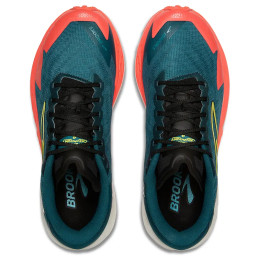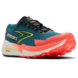 Inkább könnyű - 270g. tömegű alacsony sarklejtés 6mm. profi terepfutócipő a Brooks-tól. Kifejezetten vastag párnázású megfelelő védelmet nyújtó, hatékony kapaszkodó jól tapadó gumitalp, így még sziklás terepeken is nagy sebességgel tudunk haladni még lefelé is. A sarokrésznél sarokmegtámasztással a stabilitásért.