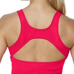 Technikai, rugalmas anyagból készült felső női atlétáknak nyári meleg napokra. Háta hálós része még jobban elvezeti az izzadságot és hagyja a bőrt szellőzni, így a nagy nyári melegben sem engedi túlhevülni a testet. A szabása lehetővé teszi a kidörzsölődésmentes sportolást.