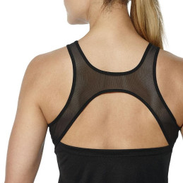 Technikai, rugalmas anyagból készült felső női atlétáknak nyári meleg napokra. Háta hálós része még jobban elvezeti az izzadságot és hagyja a bőrt szellőzni, így a nagy nyári melegben sem engedi túlhevülni a testet. A szabása lehetővé teszi a kidörzsölődésmentes sportolást.