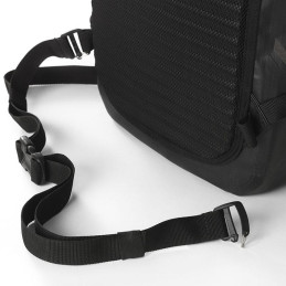 A háthoz illeszkedő részén egy jó légáteresztő hálós betét gondoskodik arról, hogy viselője ne izzadjon be alá. A vállpántokat le lehet kapcsolni, és kézitáskaként is használható.